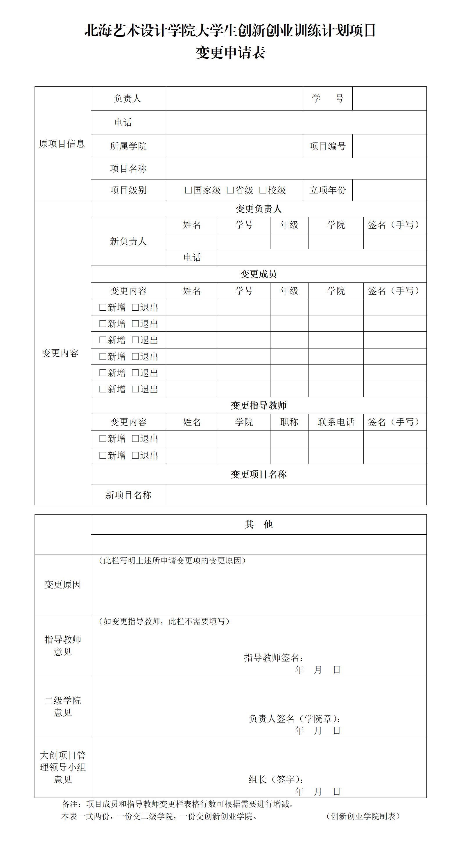 大创项目变更申请表