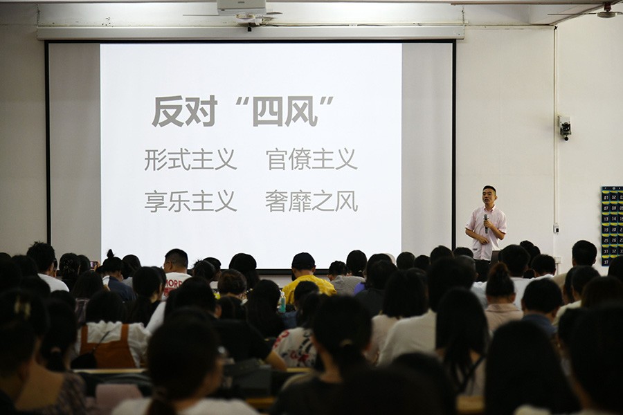 接下来带领大家学习了反对“四风”问题的相关内容,并指出形式主义、官僚主义、享乐主义、奢靡之风问题是当前群众深恶痛绝、反映最强烈的腐化堕落问题,它严重影响了党和政府在人民群众中的良好形象,严重败坏了社会风气,严重影响了“现代化”的建设,严重影响了全面建设小康社会和实现伟大中国梦的进程。