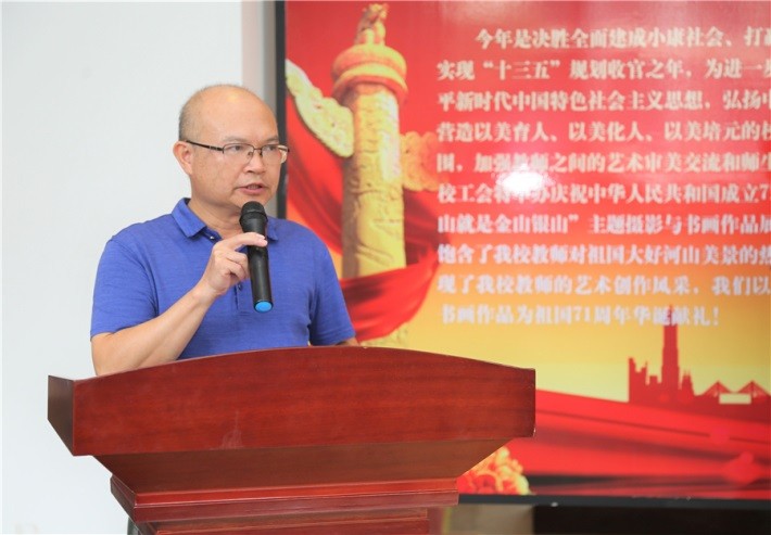 首先,北海艺术设计学院党委书记李高南致开幕辞。他谈到,15年前,习近平同志就提出了“绿水青山就是金山银山”的科学论断,随着时代的发展,这一理念日益彰显出强大的生命力。今年是决胜全面建成小康社会、打赢脱贫攻坚战、实现“十三五”规划收官之年,也是北海艺术设计学院办学二十周年,本次活动意义深远,通过摄影绘画的形式,增强师生对生态文明建设理念的理解,弘扬中华美育精神,营造以美育人、以美化人、以美培人的校园文化和艺术氛围,加强师生间艺术审美交流。