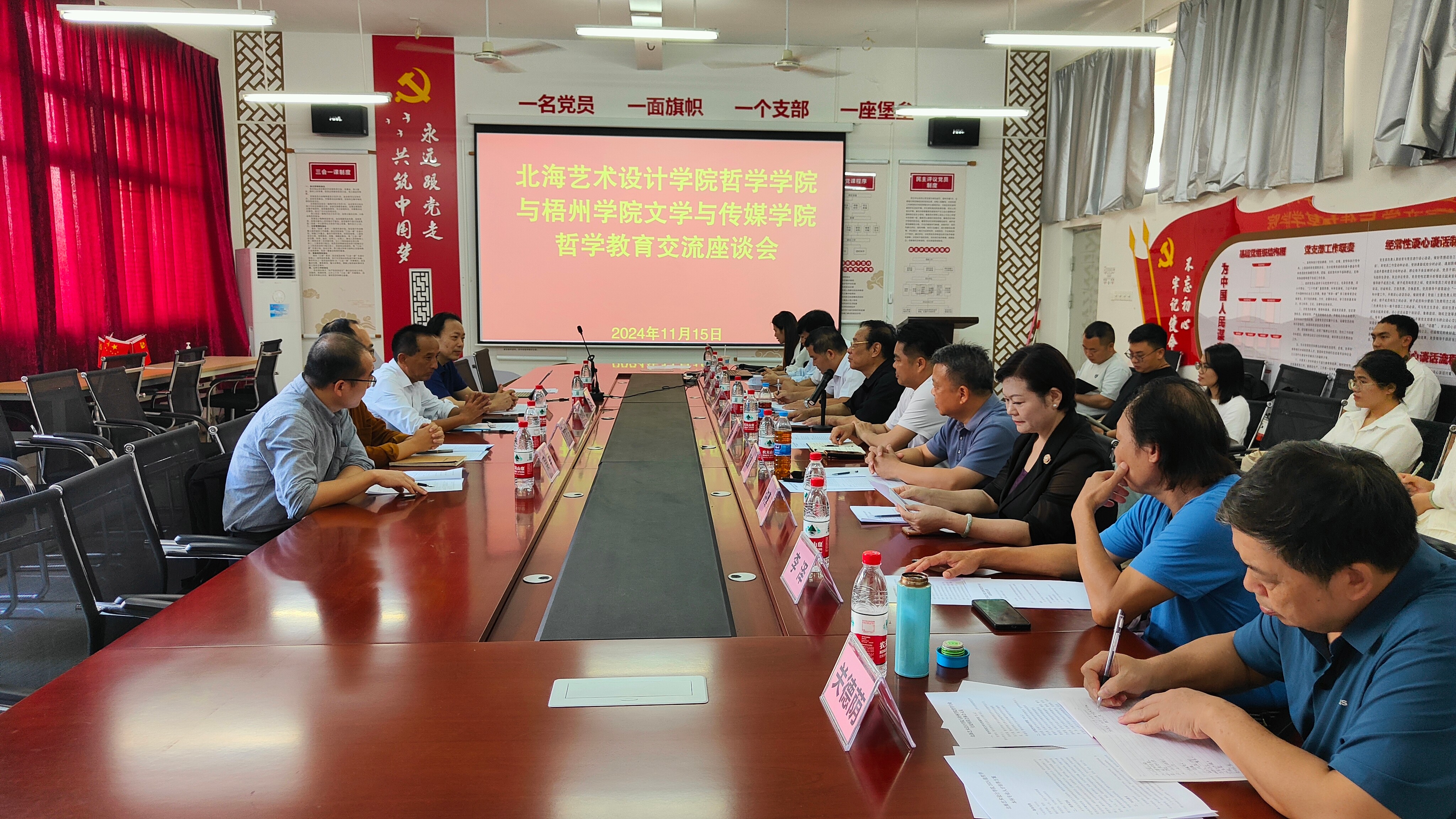 随后,覃传茵副院长向与会嘉宾介绍了我校哲学专业的发展概况。哲学学院是我校开设的非常具有特色的学院,哲学专业在学校的发展中起着基础和引领作用。我校哲学专业积极引进国内优质师资力量,打造高水平教师团队;凭借学校的办学优势和特色,将传统哲学专业课程与特色艺术文化类课程相融合,打造“哲学+艺术”的人才培养特色,用心培养学生的哲学思辨能力和艺术鉴赏能力;坚持以应用型人才培养为导向,采取北海和北京双城育人的培养模式,以精神文化为育人载体,不断吸取北海海洋文化和北京历史文化,达到以文化人的培养目的。目前,我校哲学专业毕业生就业方向多元,发展前景广阔。