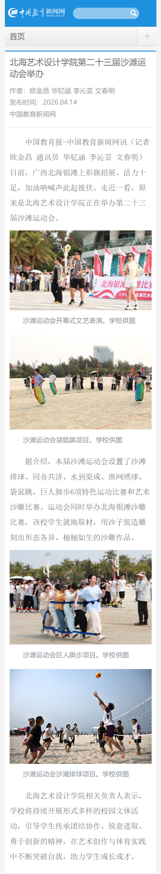 中国教育报:北海艺术设计学院第二十三届沙滩运动会举办