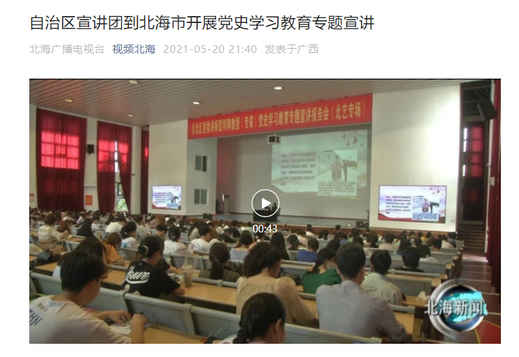 广西日报:党史学习教育进校园| 自治区党委讲师团特聘专家到北海开展专题宣讲