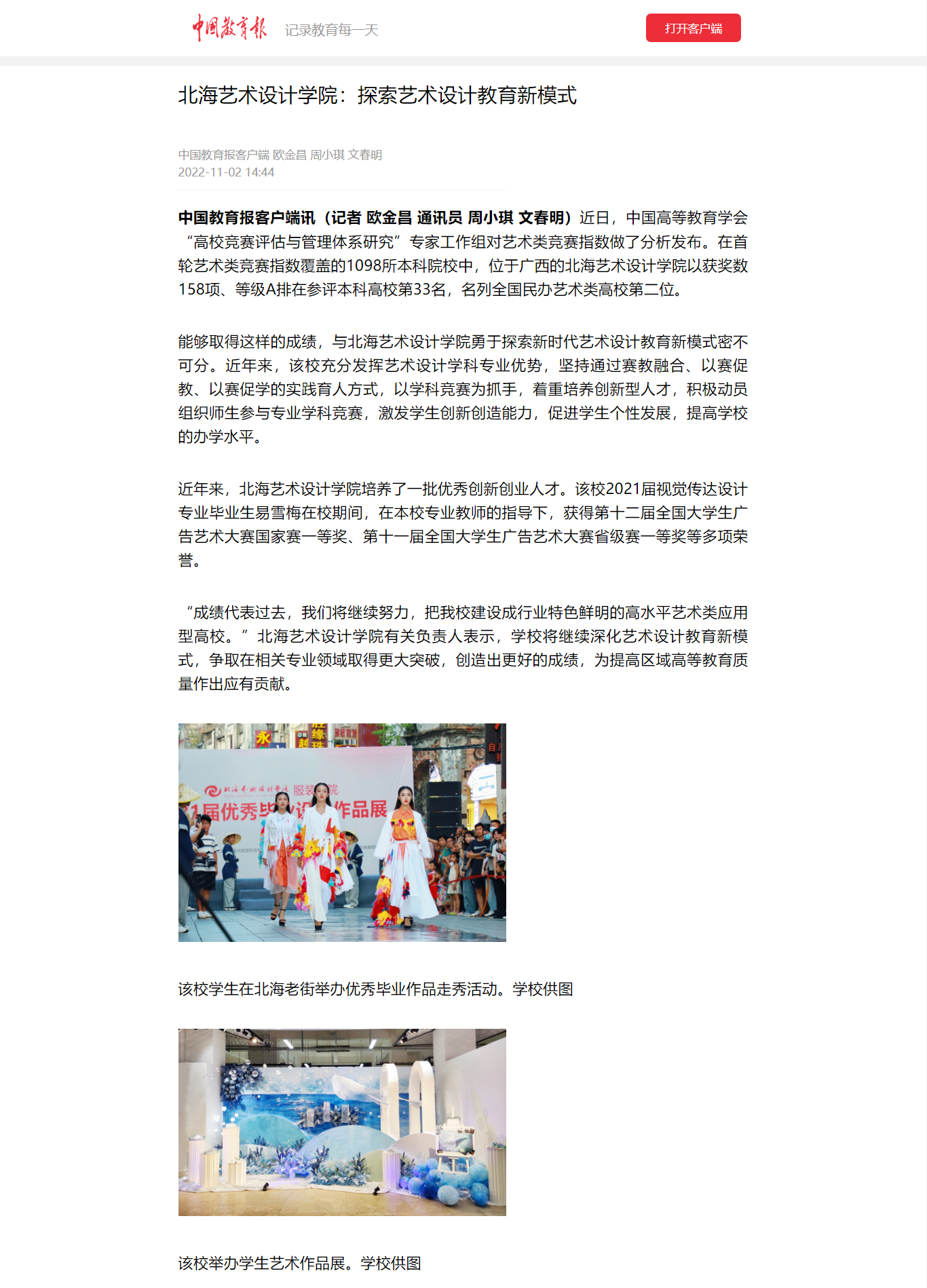 中国教育报:北海艺术设计学院探索艺术设计教育新模式