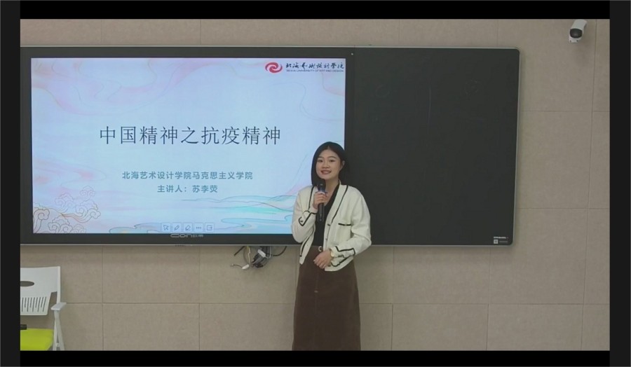 在教学展示环节,我院思政课教师苏李荧作了题为《中国精神之抗疫精神》专业而独到的大学现场教学展示。以“中国为什么能迅速控制疫情”视频导入,引发学生主动去思考问题,从“是什么、为什么、怎么办”三方面进行了非常详细的讲授,并结合北海7.12疫情发生以来北海市当地以及北海艺术设计学院师生敢于担当、奔赴一线生动具体的感人事件进行展示。