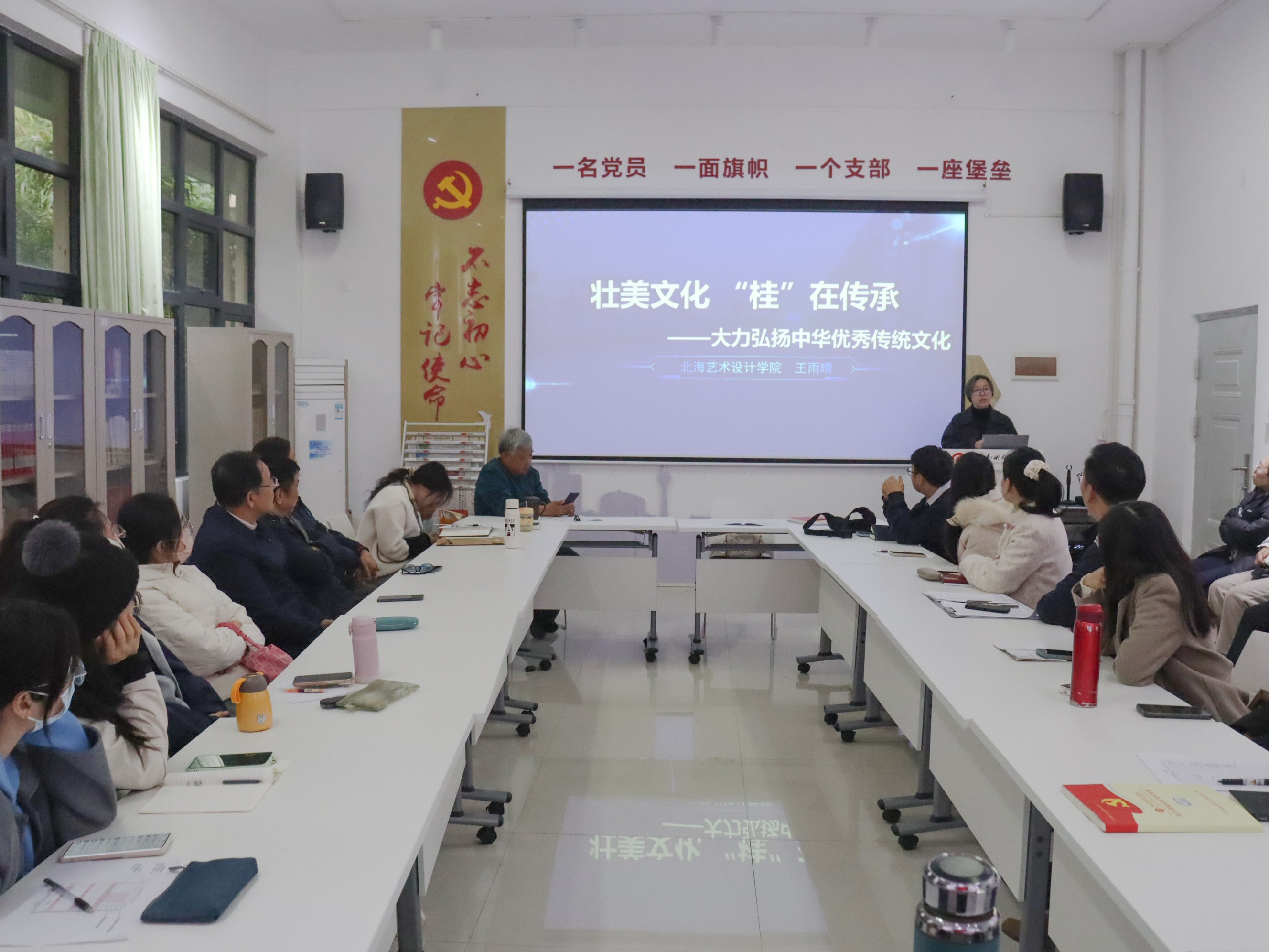 王雨晴老师以《壮美文化 “桂”在传承——大力弘扬中华优秀传统文化》为题,从《思政综合实践课》出发,紧密结合我校艺术设计类专业特点,分为学情分析、教学目标、教学方法、教学设计、教学创新、反思改进六个方面向大家进行了示范课展示,她围绕品、学、创、传向大家精彩地阐述了她环环相扣的教学设计。王老师的授课逻辑严谨、内容丰富详实、教学方法灵活多样,生动展示了思政课的魅力与价值所在,引发了在场教师的纷纷称赞和久久深思。