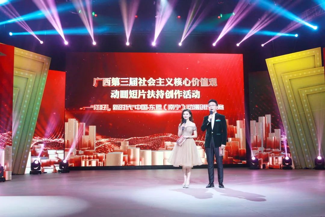 2019年12月26日,下午3点,广西第三届社会主义核心价值观动画短片扶持创作活动——“你好,新时代”中国•东盟(南宁)动漫创作大赛颁奖典礼在广西广播电视台演播厅举行。自治区文化和旅游厅党组成员、副厅长赖富强自治区广播电视局党组成员、副局长朱为范等领导和嘉宾出席了颁奖典礼。