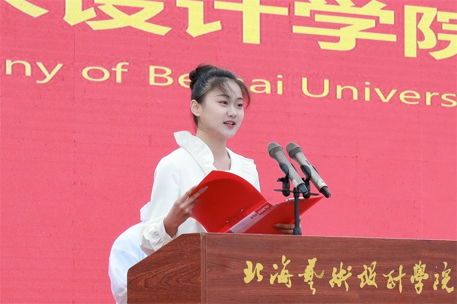 典礼最后,全场合唱校歌《北海艺术设计学院校歌》,开学典礼在悠扬婉转、铿锵有力的校歌声中圆满落下帷幕,广大学子满怀期待和热情,开始了新的成长之旅。(李宗毅、周小琪、李伟民、陈亦晨、刘思浩/摄)