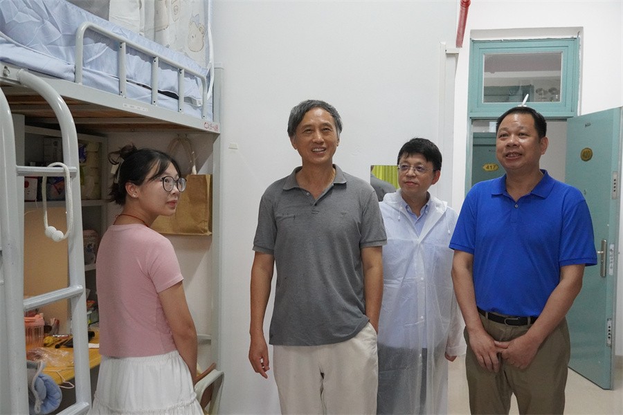 学校高度重视迎新工作,9月10日,学校党委书记覃宪儒、校长卢新华、副校长何煜等校领导走进新生宿舍与新生及家长亲切交流,询问他们初入大学校园后的感受,关心他们在生活、饮食等各方面的适应情况。校领导鼓励同学们勇敢面对新环境,尽快调整自身状态,主动适应大学生活,努力学习,积极投入到即将开始的丰富多彩的大学生活中。校领导的亲切走访和温暖慰问,让家长安心放心的同时也增强了新同学对学校的归属感和认同感。