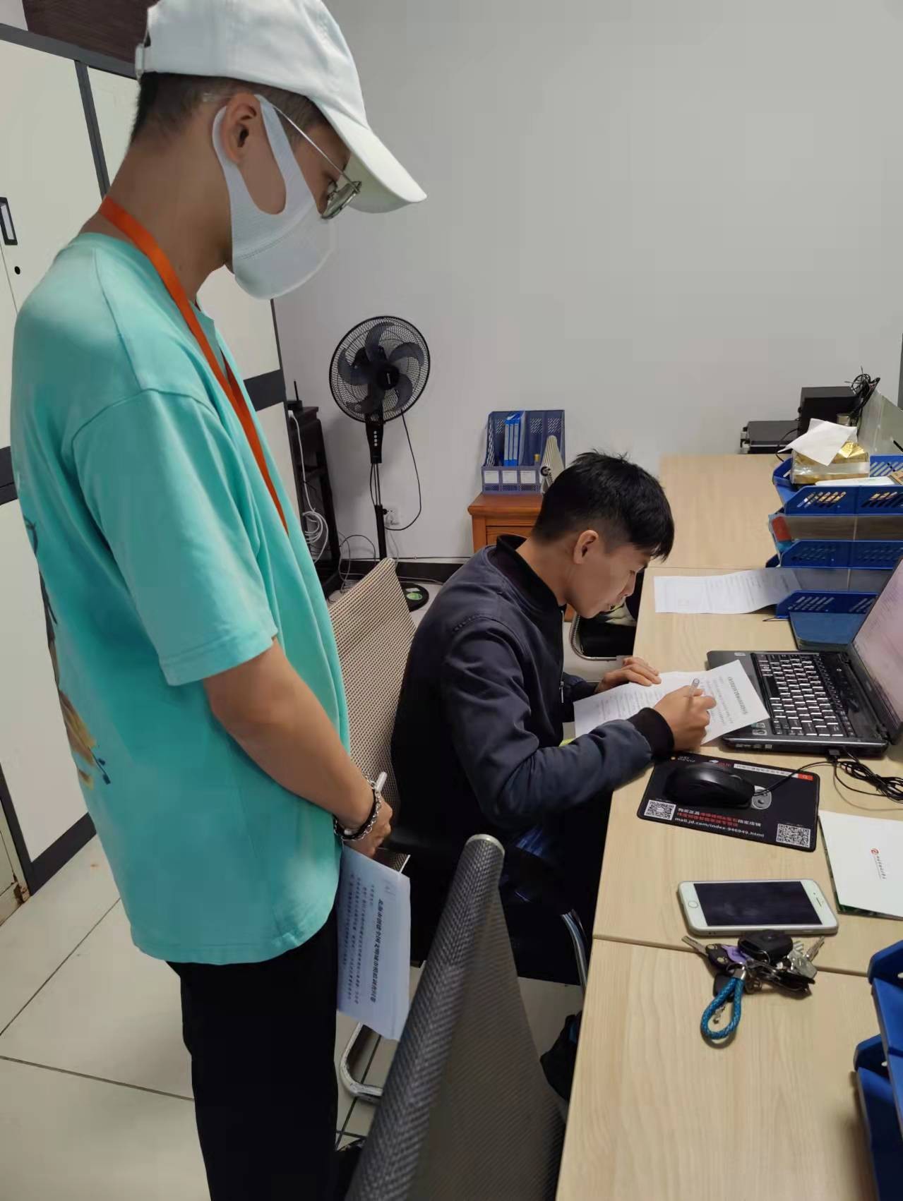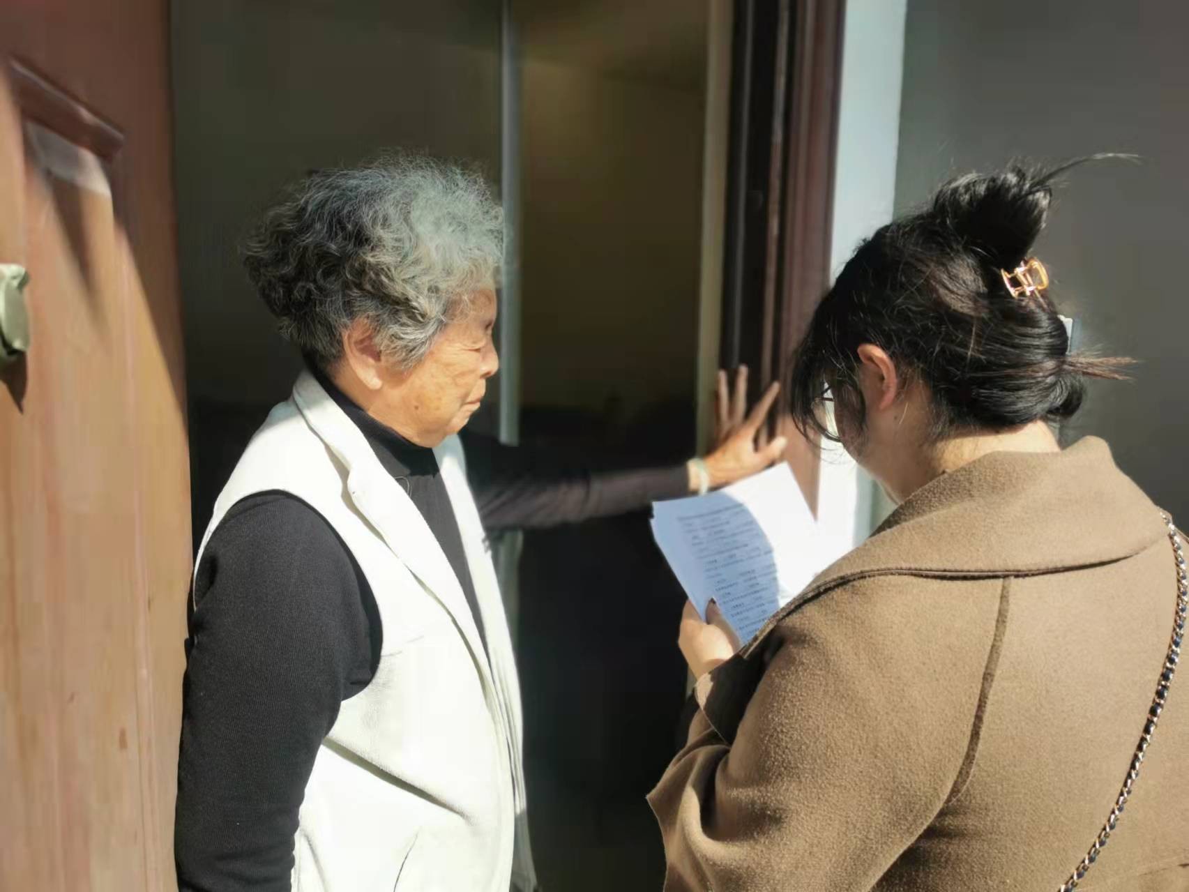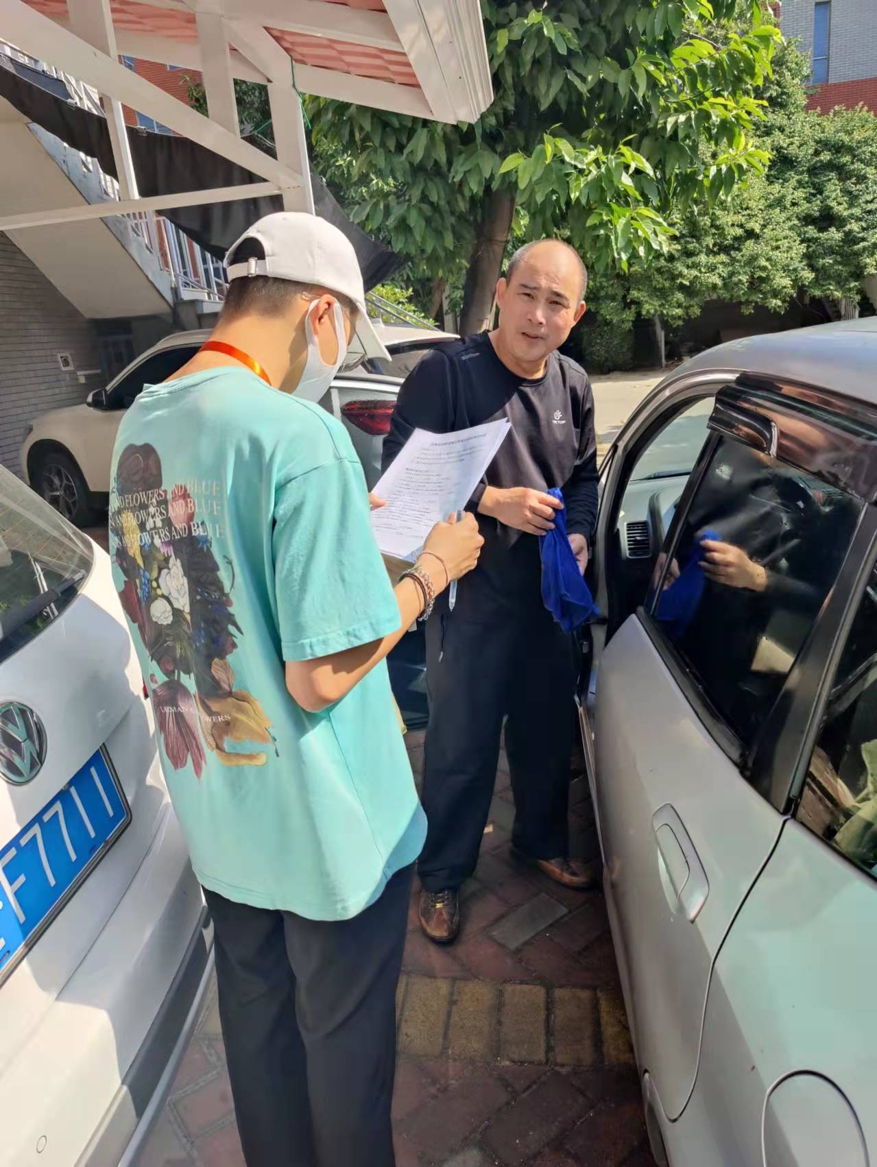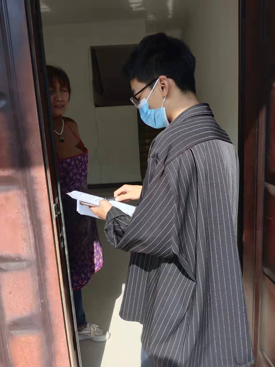 截止至17日15点整,所担任“18户居民填写调查问卷任务”,已完成18户。(许荣军 摄)