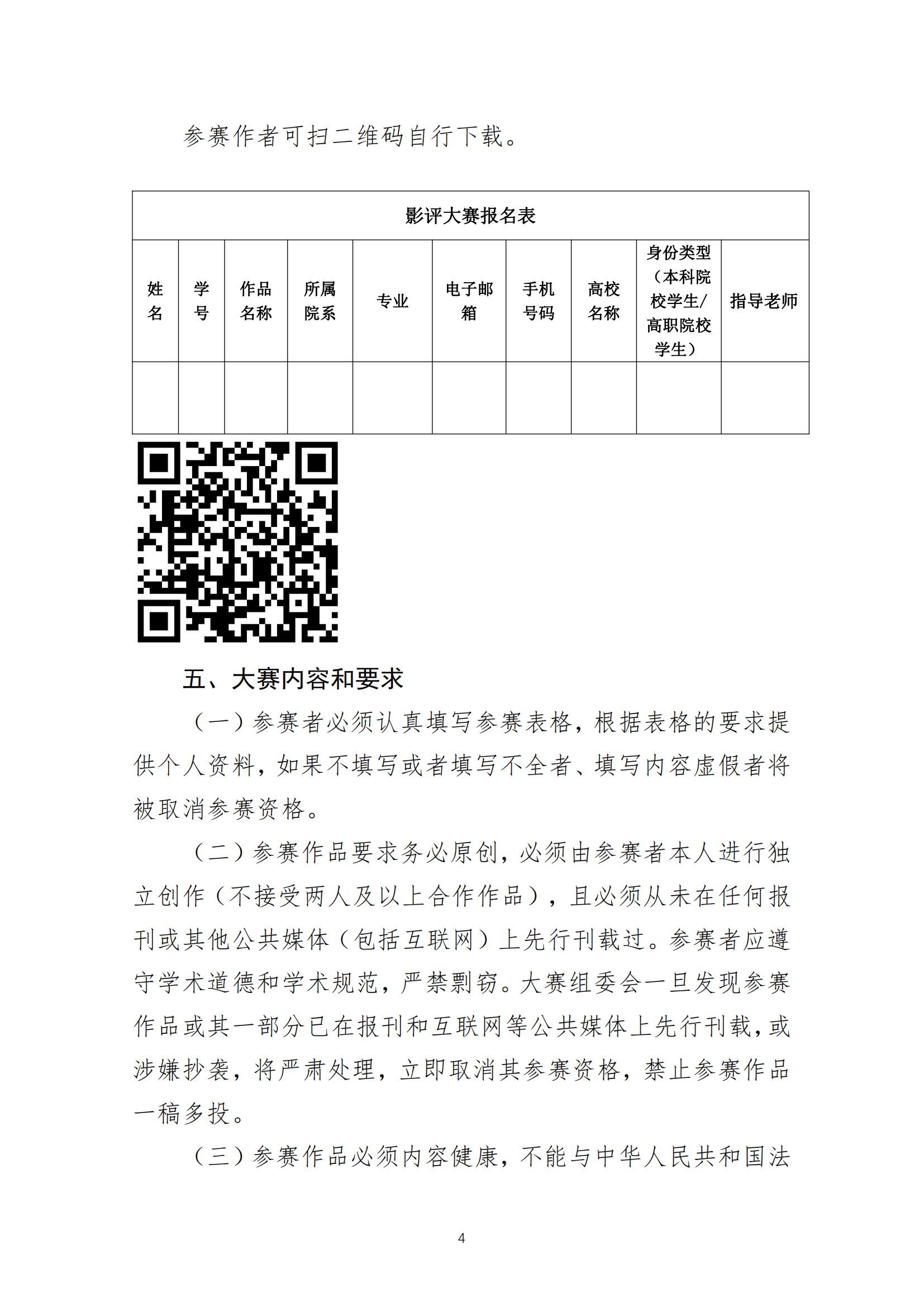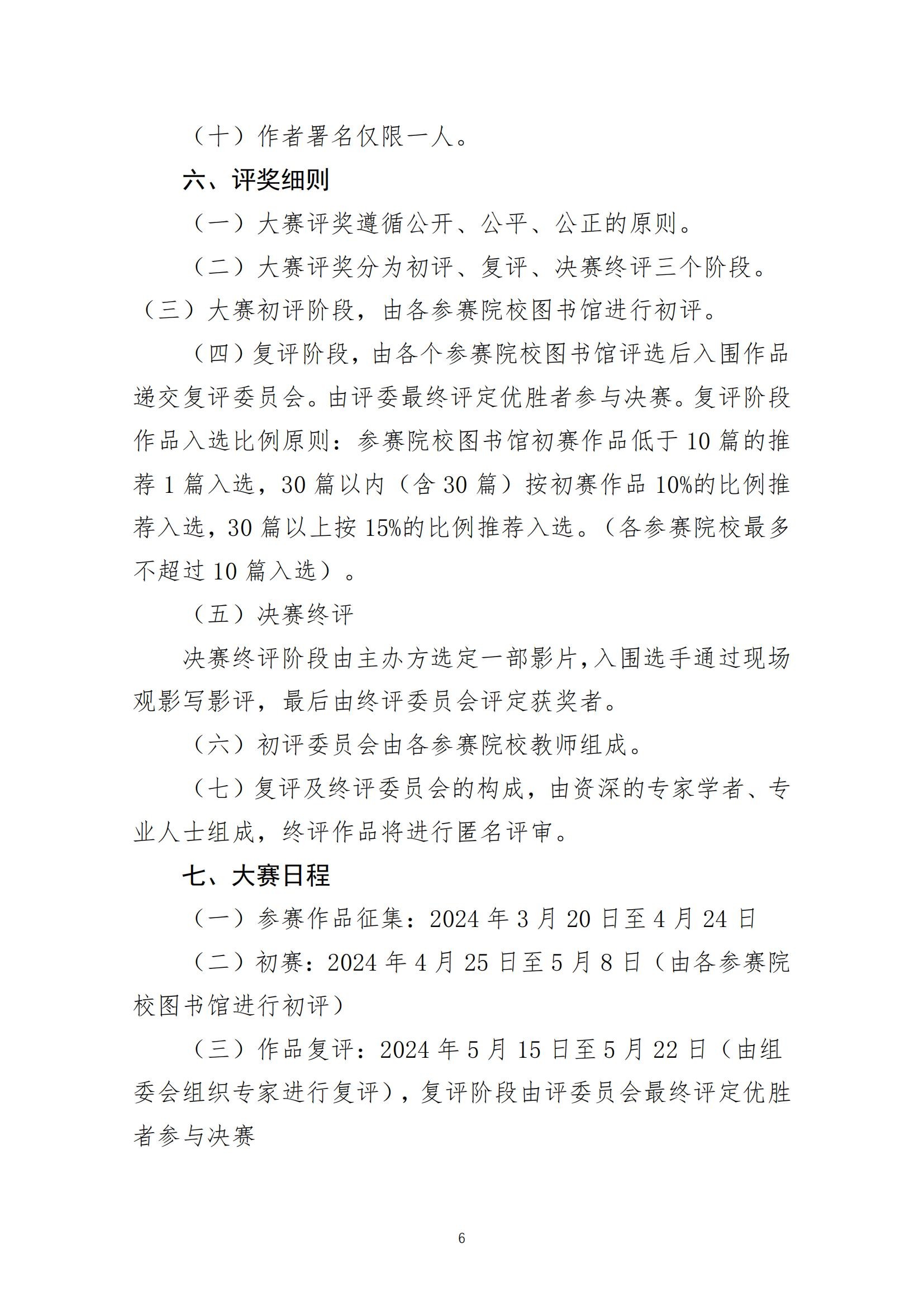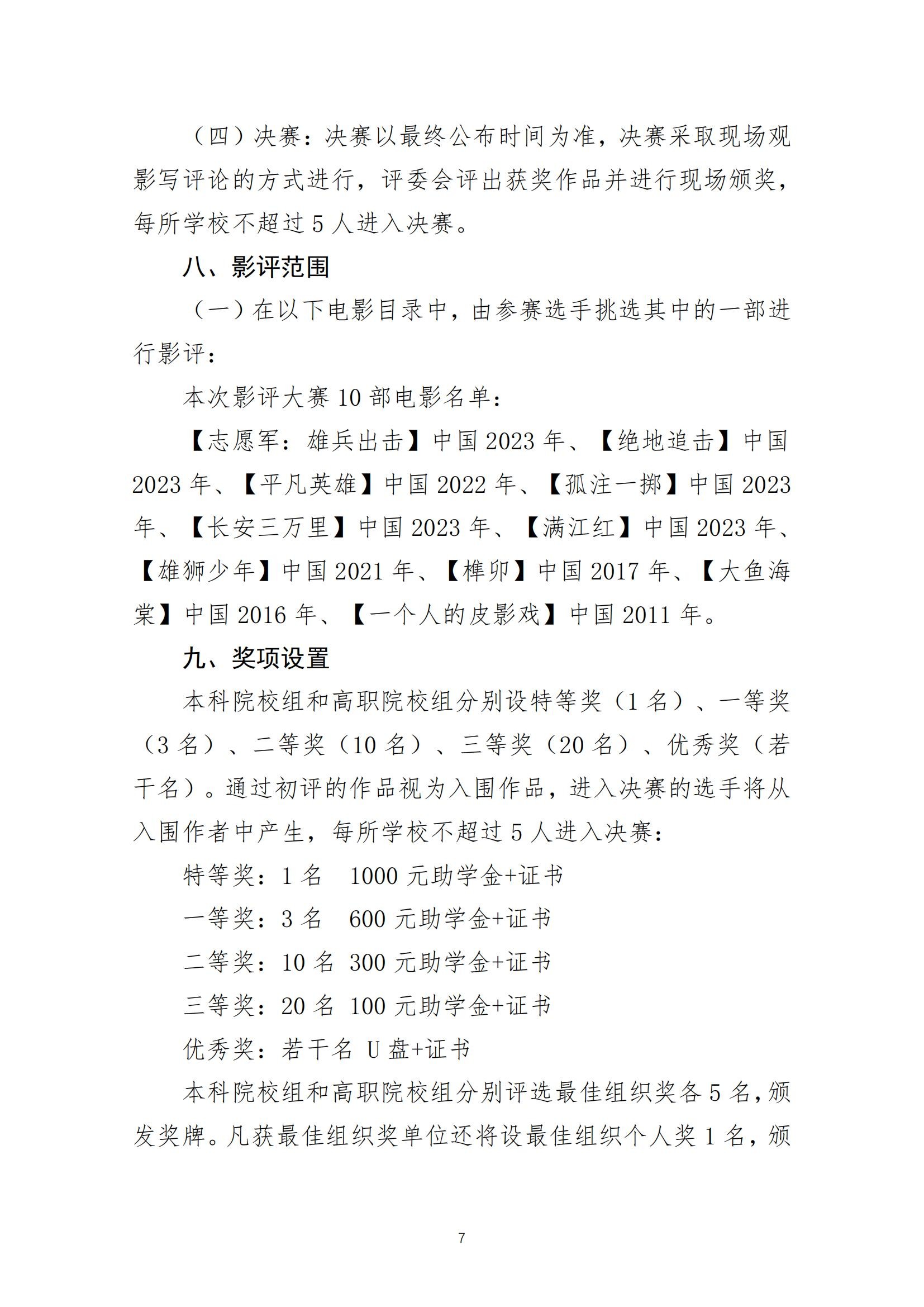 (四)决赛:决赛以最终公布时间为准,决赛采取现场观影写评论的方式进行,评委会评出获奖作品并进行现场颁奖,每所学校不超过5人进入决赛。