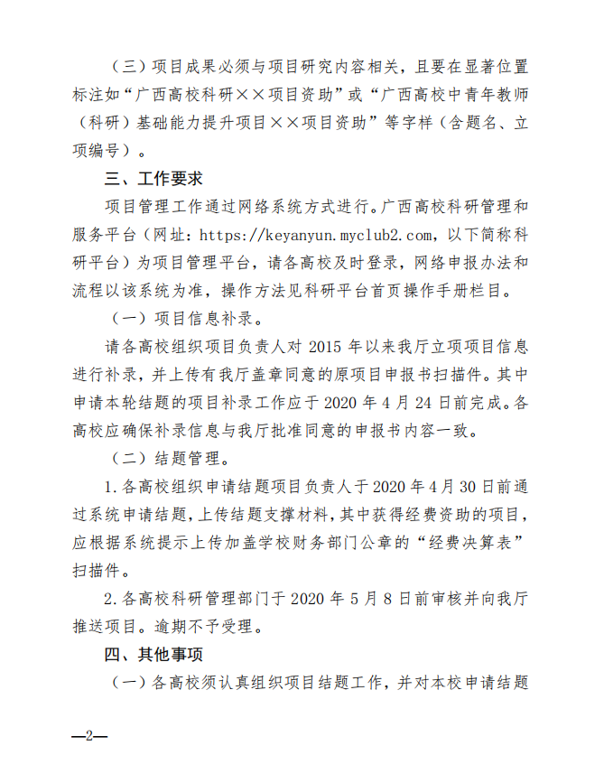 自治区教育厅关于做好2020年度广西高校中青年 教师科研基础能力提升项目结题工作的通知
