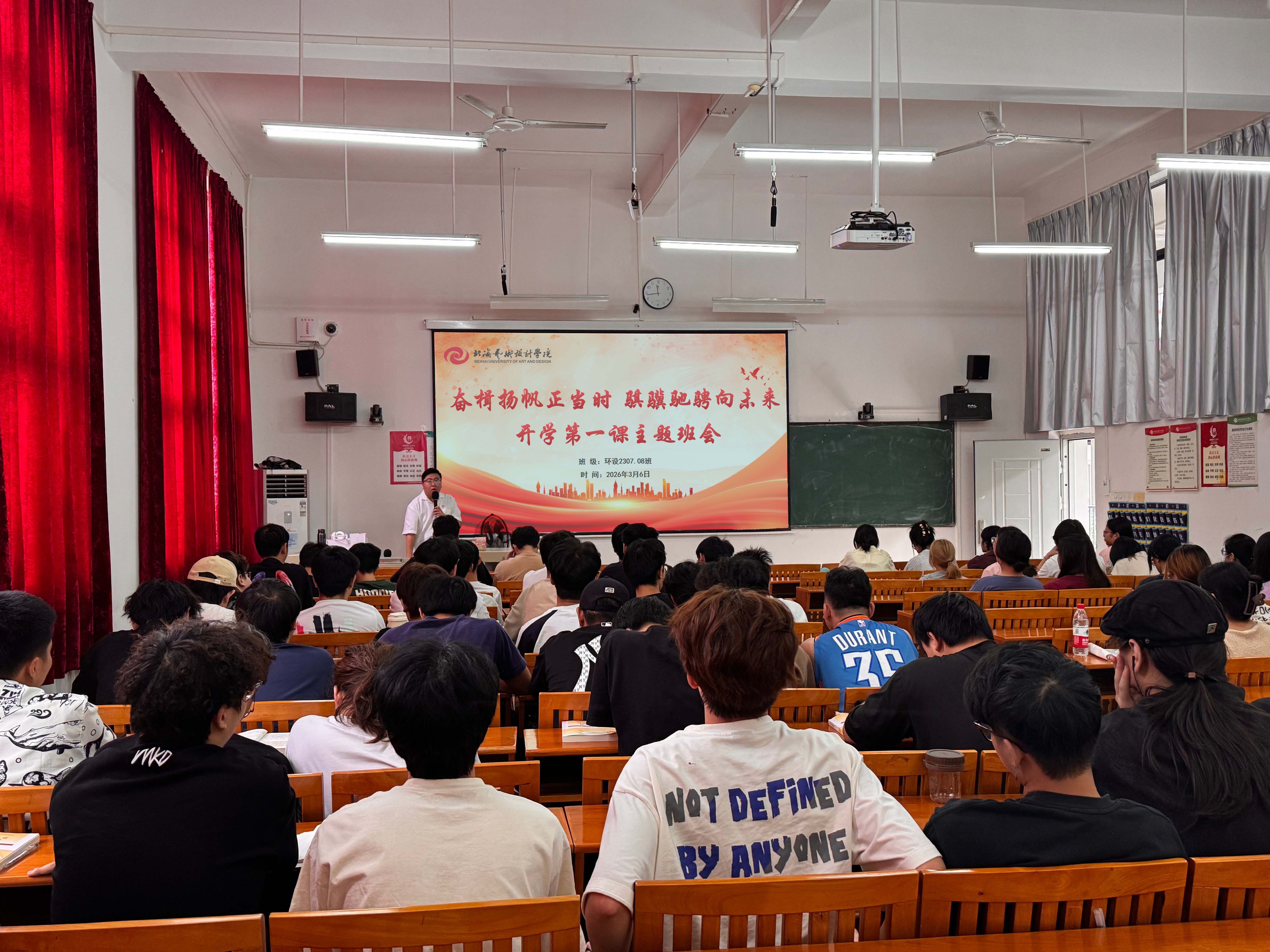 为深入推进思想政治教育,引领青年学子坚定理想信念、明确发展方向、筑牢安全与学风根基,以昂扬姿态开启新学期征程,2026年3月2日至3月6日,北海艺术设计学院建筑与环境艺术学院面向23级、24级、25级全体班级,全面开展“奋楫扬帆正当时,骐骥驰骋向未来”主题开学第一课班会活动。