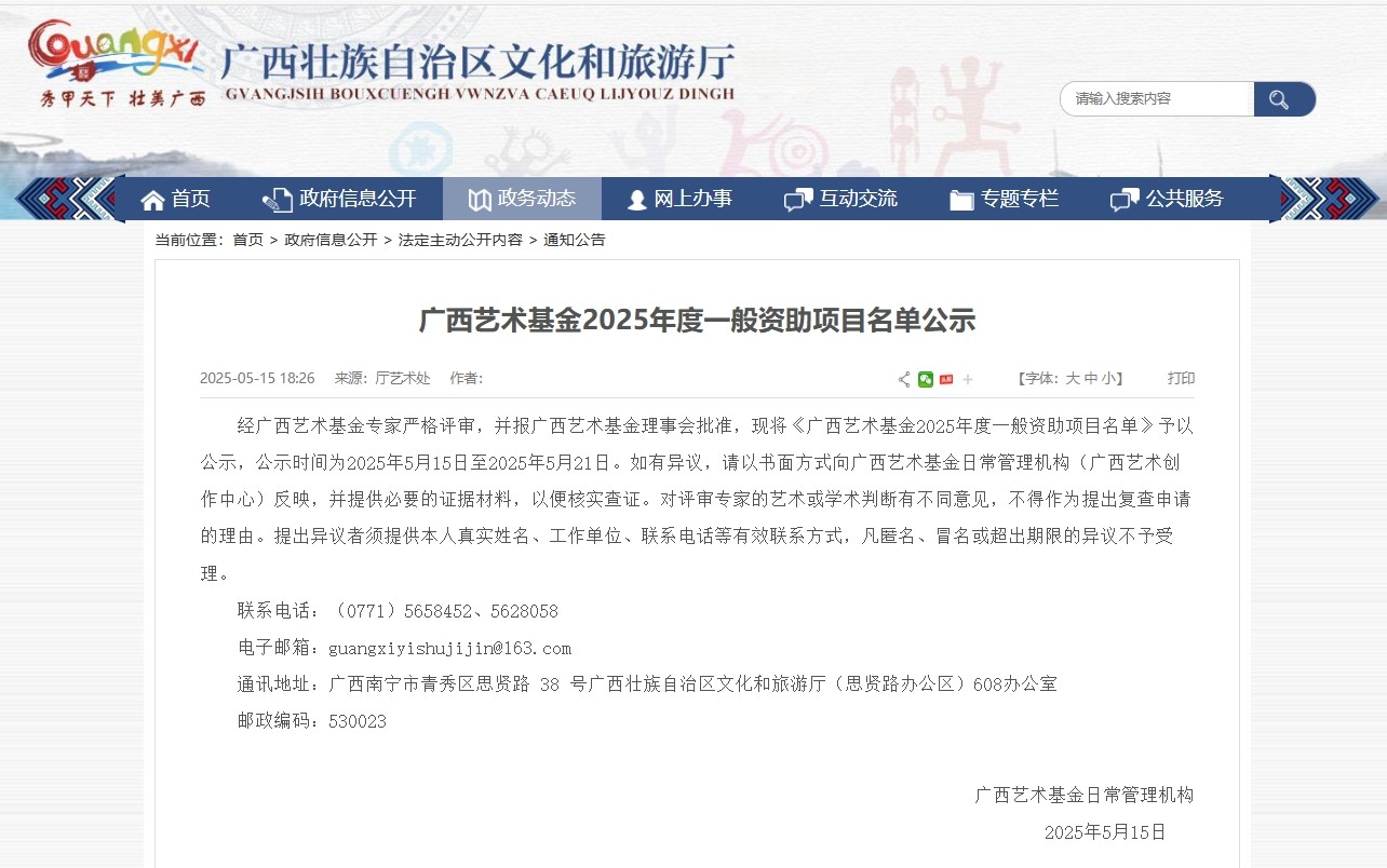 根据广西艺术基金日常管理机构发布的《广西艺术基金2025年度一般资助项目名单通知》,我校美术学院的陈建江、程宣睿老师以及书法学院的江威龙老师,成功获得3项广西艺术基金2025年度一般资助项目中的美术创作资助项目。这3个项目的获批,充分证明了我校师生在艺术领域的不懈奋斗与创新实践。