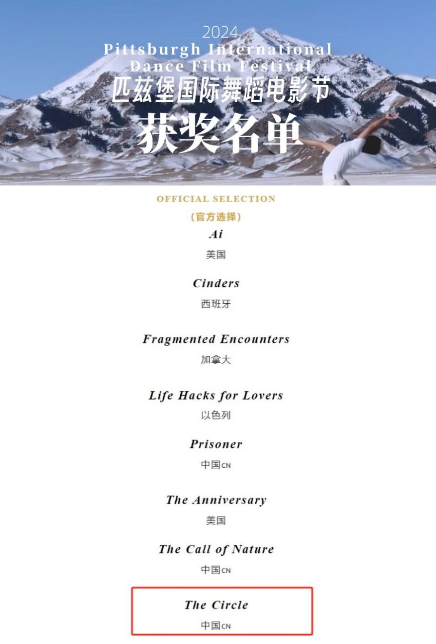 近日,我校舞蹈表演与摄影专业联合创作的舞蹈影像作品《The Circle》(中文名:《渡》)在2024匹兹堡国际舞蹈电影节中获奖。该作品也同时入围2024北京国际电影节和西班牙·春天舞蹈电影节等多个国际电影节舞蹈影像环节。