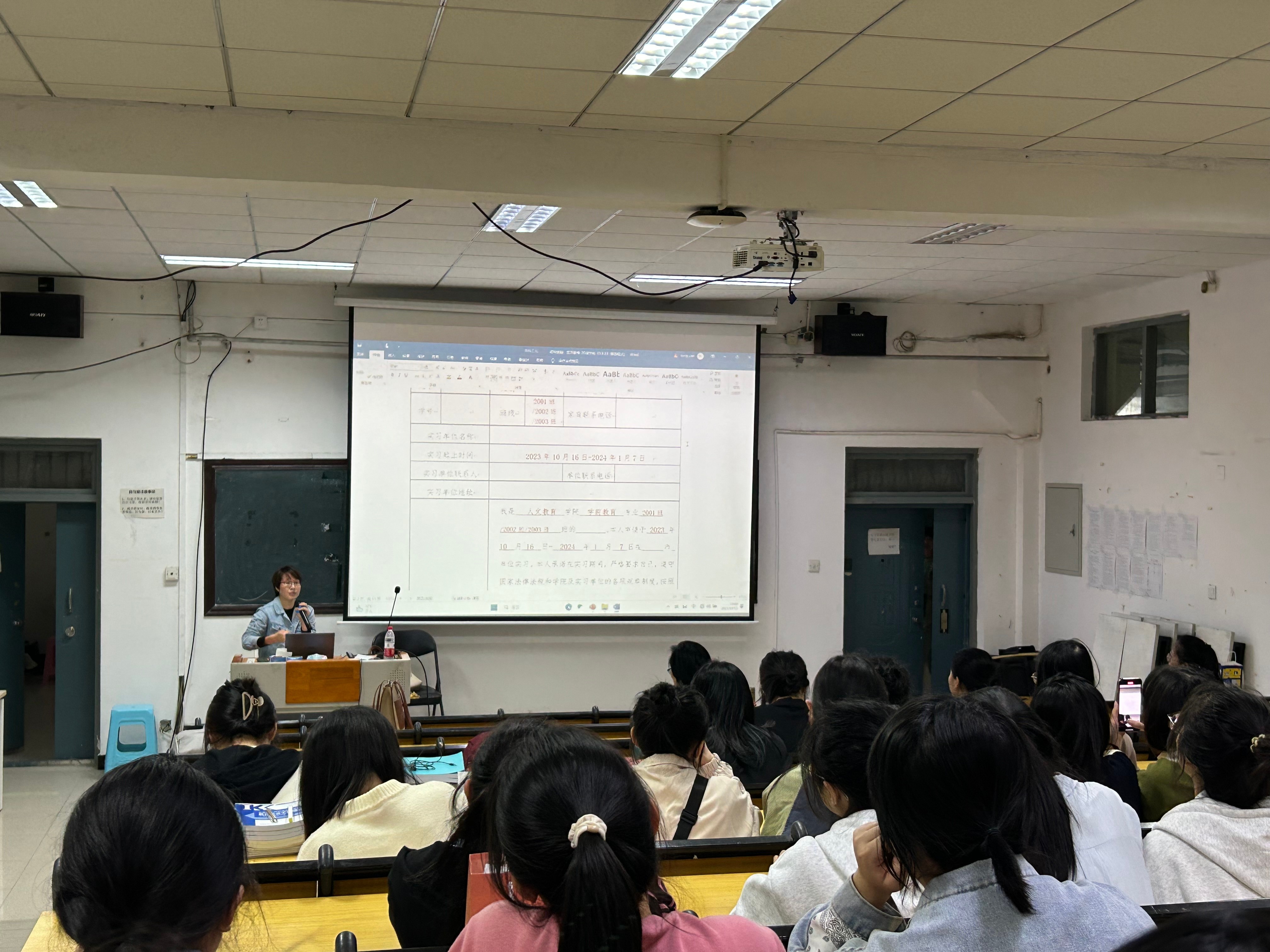 通过此次实习动员大会,同学们实习的重要性,实习过程中应遵守纪律事项以及需要填写的材料都有了深入的了解为同学们接下来毕业实习中顺利完成实习任务打下坚实的基础。(学前教育教研室、舞蹈表演教研室、北京实践基地(沙河)/摄)