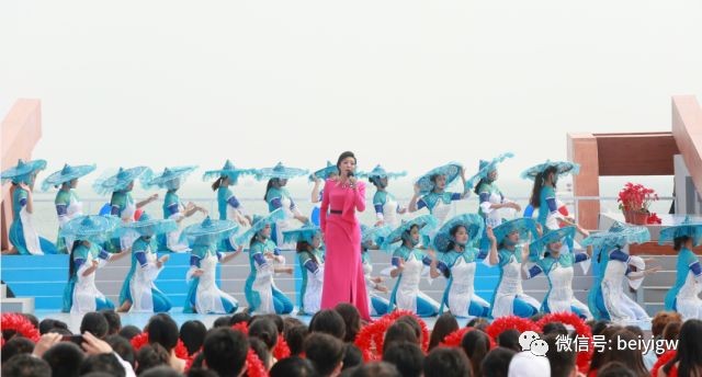 1月4日,《美丽中国唱起来》节目在涠洲岛南湾海上运动基地进行了正式录制拍摄。整台文艺活动的开场设在美丽洁白的沙滩上,涠洲岛南湾海滩沙滩干净整洁,蓝盈盈的海水清澈见底,配上演员们动人的舞姿,堪称一幅天然的绝美画卷。
