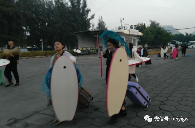 天才朦朦亮,负责舞蹈表演的同学们就已经大包小包整装待发
