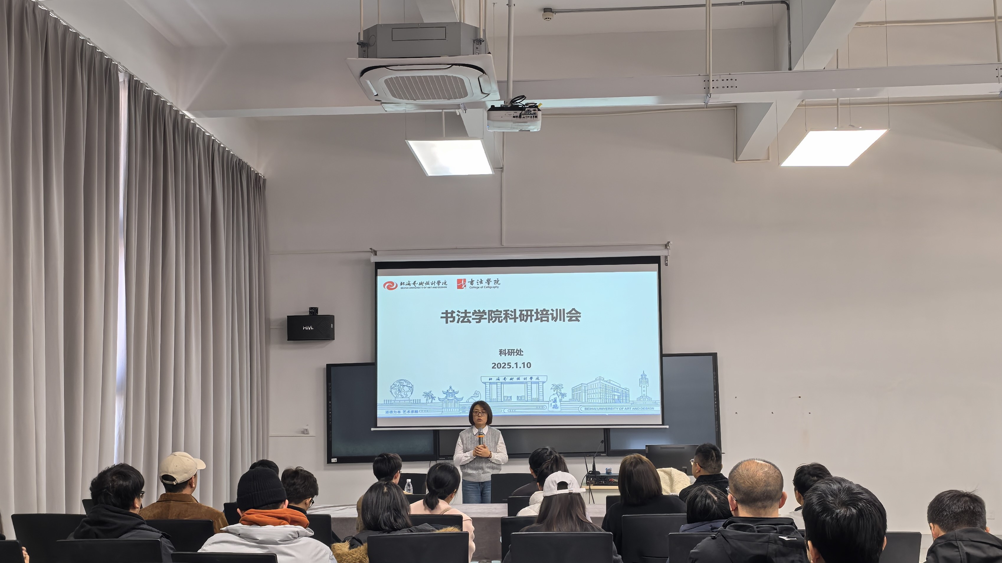 为了进一步指导教师明确科研方向,提升项目申报水平。2025年1月10日,书法学院于艺德楼507书法学院教研室召开科研培训会。书法学院全体教职工参与本次会议,会议由书法学院常务副院长苏乃从主持,科研处处长刘晓娜主讲。