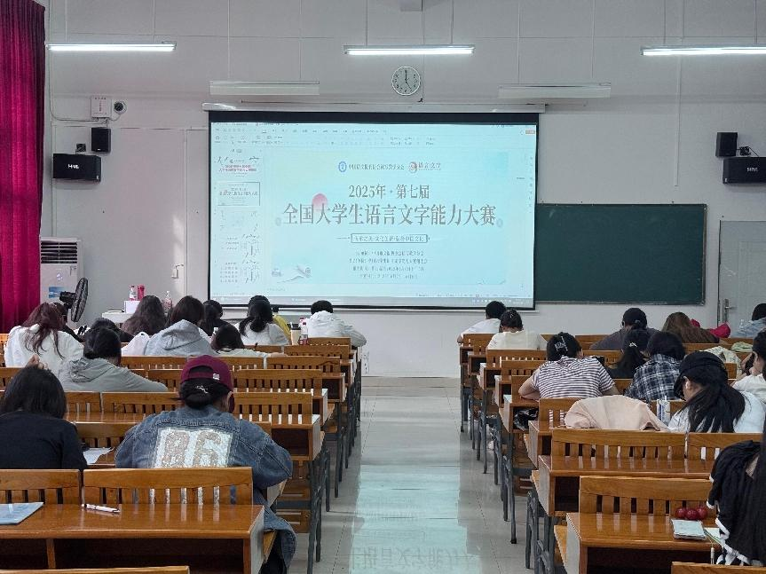 由中国语文报刊协会读写教学分会主办、全国大学生语言文字能力大赛组委会组织的第七届全国大学生语言文字能力大赛省赛于6月7日至8日成功举办。我校文学院作为协办单位,全程负责校内赛事统筹工作,保障182名参赛学子顺利参与比赛。目前,大赛评审工作正在紧张开展,获奖结果及证书预计于下学期初公布并发放。