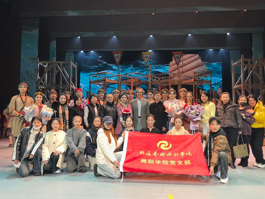 当天,我校舞蹈学院师生与北部湾大学音乐舞蹈学院党员教师代表还共同观看了国家艺术基金资助的精品舞剧《大浪千帆》,并亲切慰问了参演的两校校友。舞剧演出结束后,北海艺术设计学院校长卢新华与北部湾大学音乐舞蹈学院一行上台,与两校参演校友合影留念,为本次共建活动画上圆满句号。北海艺术设计学院党委宣传部部长文春明、舞蹈学院党支部书记宋慧敏,北部湾大学派驻共建工作队成员古雅峰、刘承参与此次共建活动。