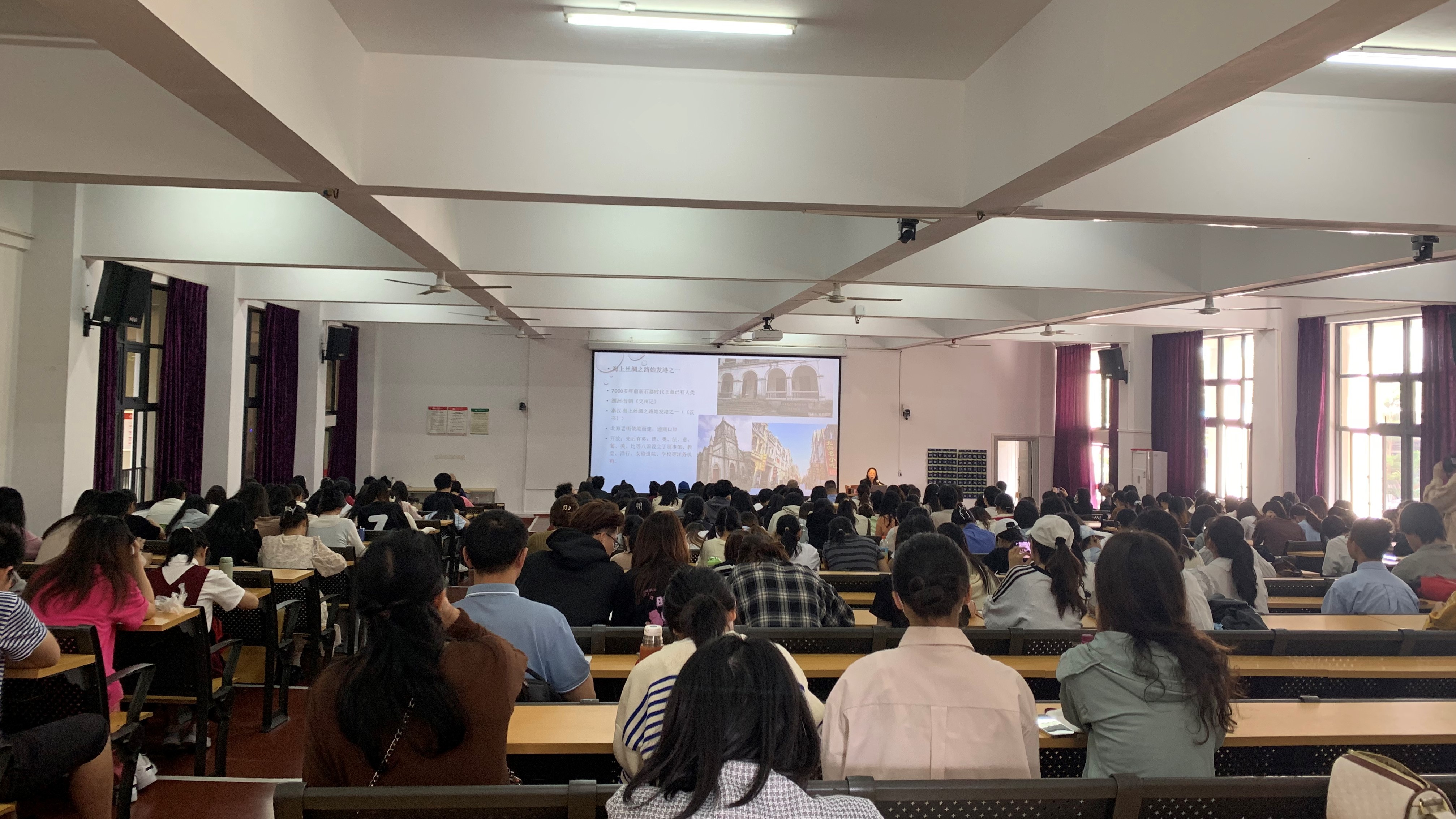 讲座最后,张燕玲教授立足新时代中国的巨大变革、立足新时代文艺的丰富实践、立足北海,对北海的壮剧、书法、漓江画派、文学与历史事件相结合的文艺发展规划进行说明。张燕玲教授强调,艺术样式变化多样,但文艺必定万变不离其宗;鼓励学子与文艺爱好者深切体会文明、文脉不变不断,在文学的立场上读通融,不断汲取人生养料。(孟丹 摄)