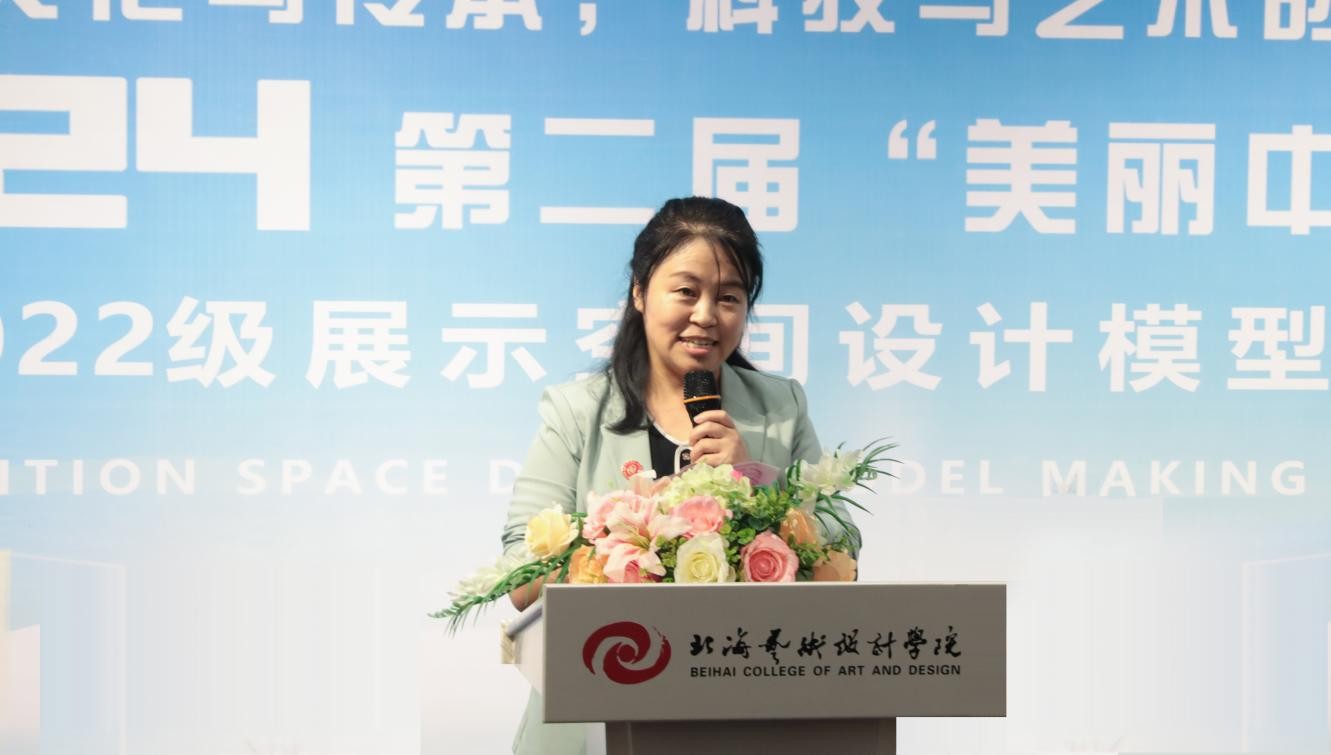 学生代表叶巧靖同学满怀激情地分享了《展示空间设计模型制作》课程中的学习经历,强调了同学们的作品均凝聚了对中国传统文化的深刻理解与艺术创新的探索,期待通过展览,让更多人感受到展示空间设计的魅力,并希望获得大家的宝贵意见以促进同学们的成长。