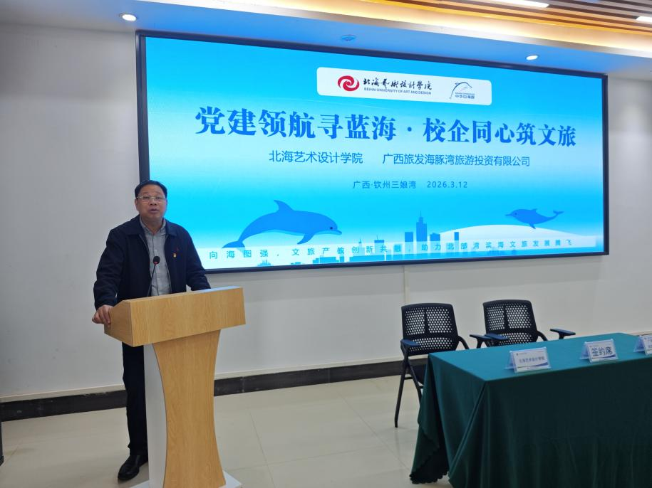 本次交流访问活动的成功举办是校企双方落实新时代党的建设总要求、深化产教融合的务实举措。下一步,北海艺术设计学院与广西旅发海豚湾旅游投资有限公司将以党建共建为纽带,充分发挥各自资源优势,推动专业教学与文旅实景实践深度融合,加快推进研学实训基地建设、文创产品开发、短视频宣传等合作事项落地见效,切实将党建优势转化为发展优势,打造“党建+文旅+专业”校企共建特色品牌,实现党建工作、文旅产业发展与专业人才培养的同频共振、互利共赢。(景思晔   摄)
