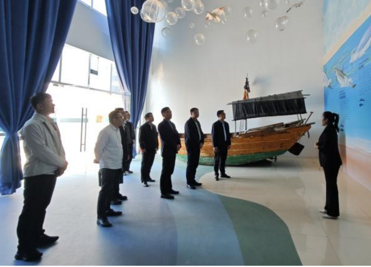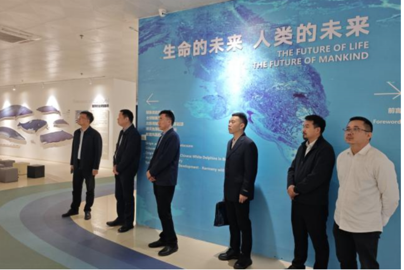会议开始前,广西旅发海豚湾旅游投资有限公司副总经理苏艳凤带领学校一行参观钦州中华白海豚科普馆,详细介绍了场馆以海洋生态保护为核心,集科普展示、教育研学、观光体验于一体的功能定位,以及馆内实物标本、科技互动展项等展陈布局,让大家直观了解中华白海豚的生存现状与保护成果,深切感受钦州海洋生态文化的独特魅力,为后续校企围绕海洋文旅融合、生态保护主题开展合作奠定了直观的认知基础。