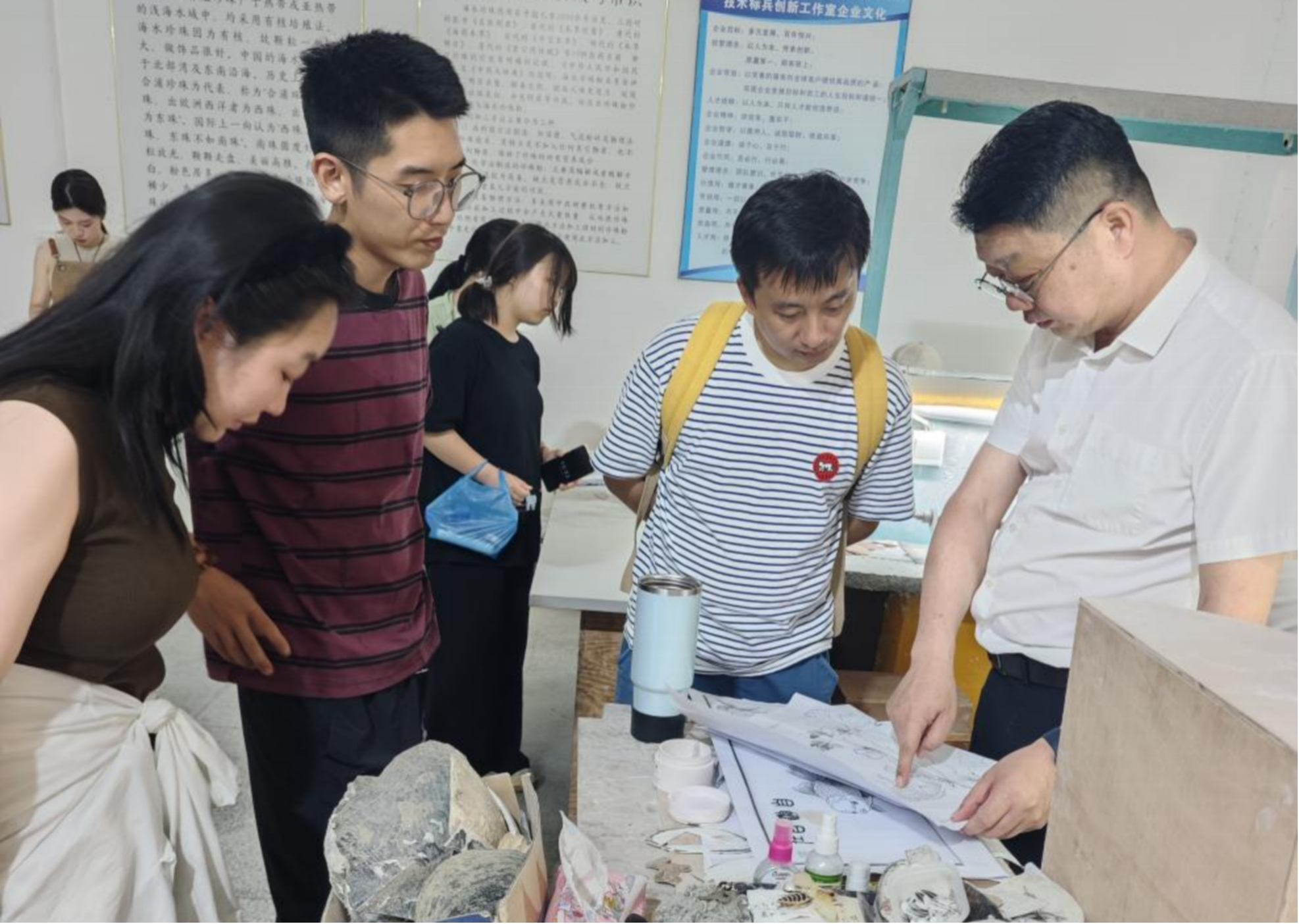 大家依次参观贝雕历史展区、工艺制作区与当代精品区,系统了解贝雕浮雕从传统工艺到当代艺术创作的演变历程,深刻体会非遗传承人的匠心精神与传统雕刻技艺的深厚底蕴。