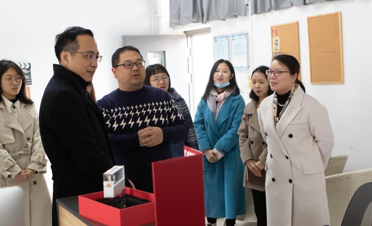 2021年12月29日,北海市党史办苏主任莅临北海艺术设计学院动画与传媒学院,视察《半条被子》创作团队情况,校党委副书记静月陪同前往制作现场。