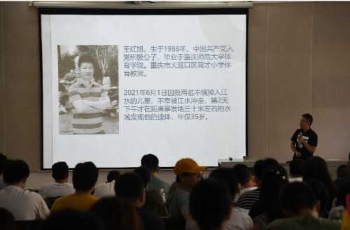 第二个环节是集体观看中央电视台的专题节目《时代楷模》——王红旭,视频详细的介绍了事发当天的具体情况和王红旭老师救人的具体经过,以及他的同事、学生、家人和重庆市民的访谈等。