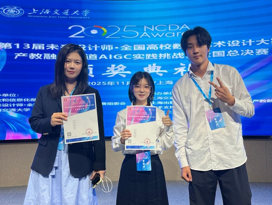 近日,第13届未来设计师·全国高校数字艺术设计大赛(NCDA)全国总决赛在上海落下帷幕。我校传媒艺术学院与影视动画学院联合组建的学生团队,在产教融合赛道——AIGC实践挑战赛(本研组)中力克强敌,斩获全国总决赛二等奖。