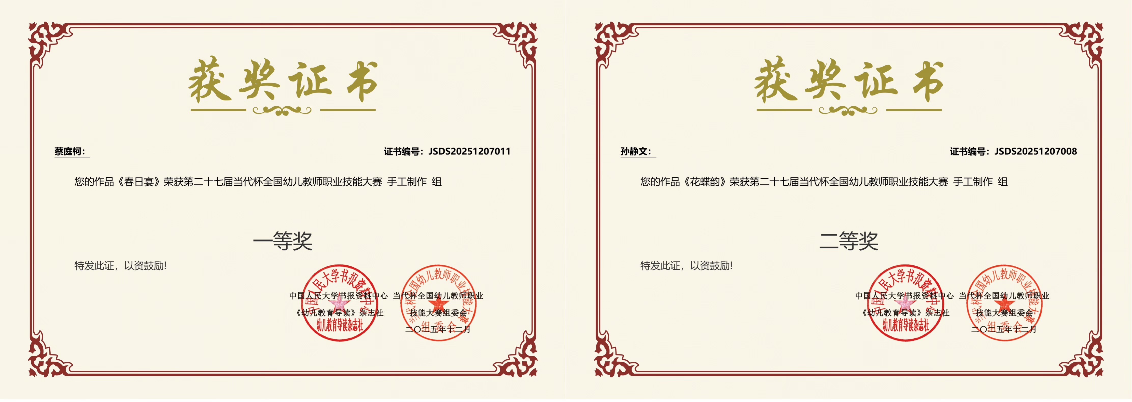 12月25日,第二十七届 “当代杯”全国幼儿教师职业技能大赛结果揭晓。我校教育学院积极组织学前教育专业学生参加此次大赛,共报送8份作品,最终斩获一等奖1项、二等奖1项、三等奖4项、优秀奖2项。