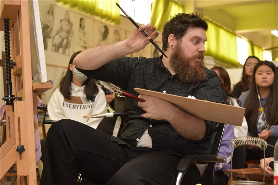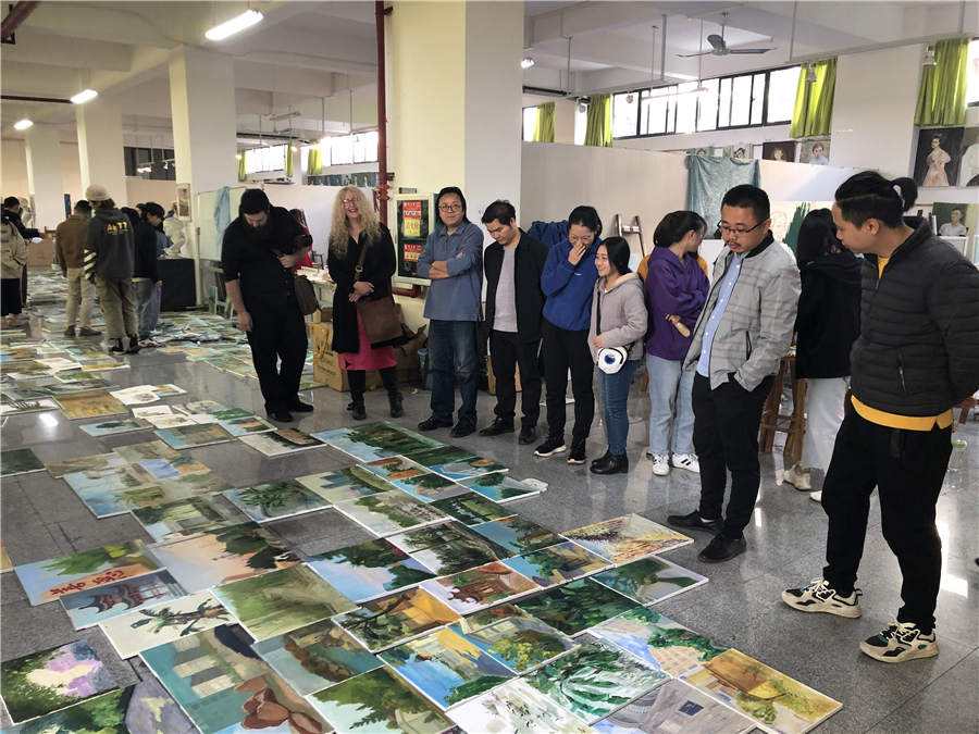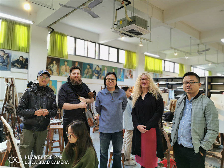 12月13日上午,迪伦主任亲临18级绘画教室,对绘画班色彩人物课程学生作品进行点评指导。为期三天的交流访问活动圆满结束。