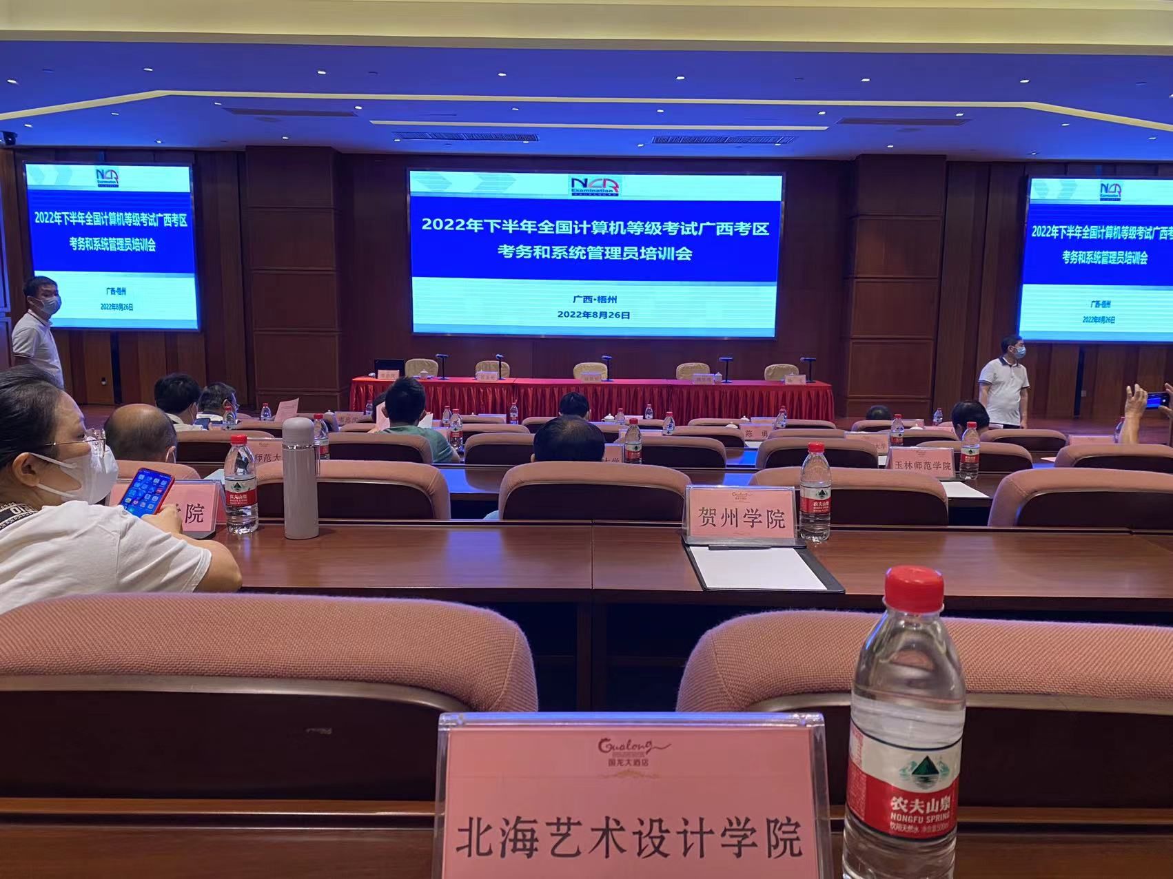 为做好2022年下半学期的全国计算机等级考试准备工作,设备与信息处排老师参加在广西南宁举办的考务和系统管理员培训会,以下是培训会现场: