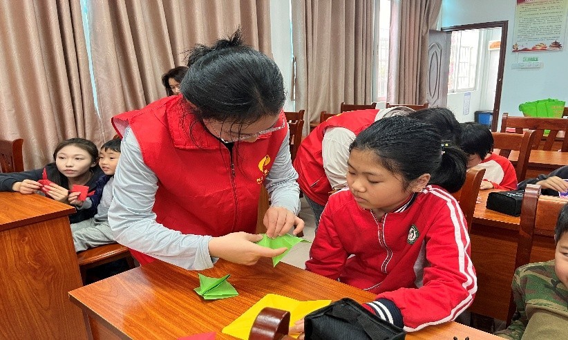 未来,我校将持续深化与外沙社区的合作,推动进社区志愿服务常态化,充分发挥我校教育资源优势,在寓教于乐的沉浸式课堂中,让孩子们在多元实践中启迪智慧、滋养心灵,同步实现志愿服务与社区教育的双向赋能。既为孩子们打开知行合一的新视窗,也为校社协同育人注入持续动能,共同护航“周末‘艺’课堂”社区支教活动扬帆远航。(校团委青年志愿者协会/摄)
